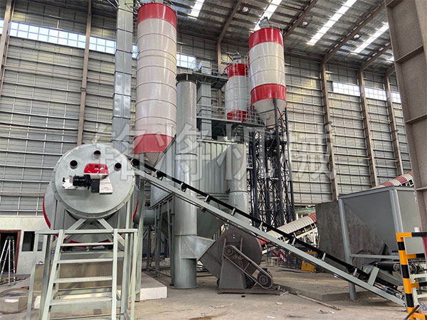 1、烘干系統采用新型三回程烘干機,可根據實際采用燃氣、重油、煤炭等不同燃料。烘干機主機采用多層內膽嵌套工藝,占地緊湊,熱利用高,產能大。